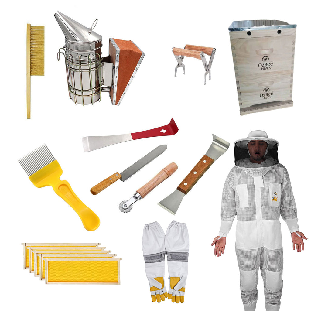 Launch your beekeeping journey with the Bee Hive Starter Kit featuring the OZ Bee Premium 3 Layer Mesh Ventilated Round Head Suit. This all-in-one package from Ozee Beekeeping Supplies offers everything you need to tend your hives safely and effectively. Explore our full range of beekeeping gear, from tools to additional protective clothing, and join countless Australian beekeepers who trust Ozee for quality and reliability. Order today and experience the joy of harvesting your own honey!